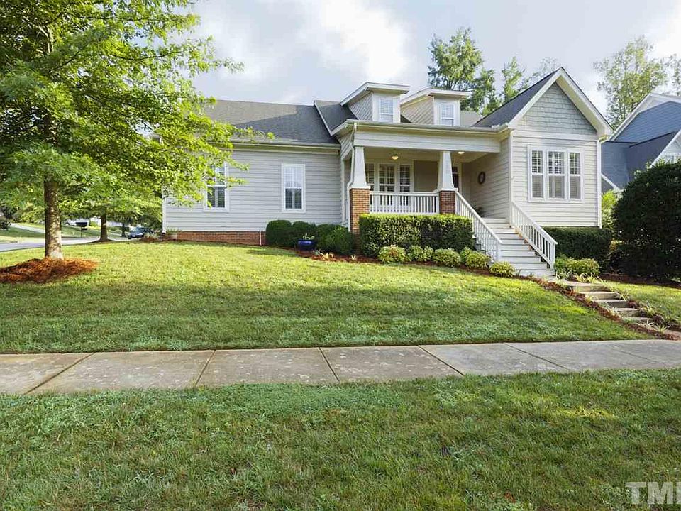"RANCH" home!! Main floor living at it's best! Corner lot, only a couple steps for easy garage entry. w/electric car outlet. 3 bed, office & dining on main floor w/1490 sq ft of unfinished attic that is stubbed for bathroom. Living Rm w/fireplace. Elite trim package, wainscoting. Blinds throughout. Hardwood floors. New paint & Carpet. LUSH landscape, irrigation system w/drip lines. Live min to Jordan Lake, Min to Chapel Hill. View of Park, play area & pond. IMMACULATE HOME & YARD!