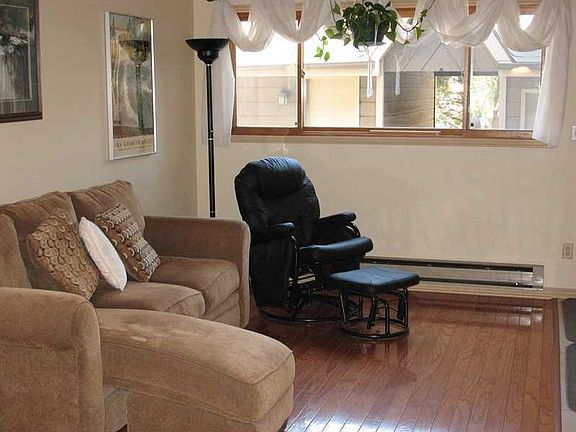 Darling condo in Alkali Creek! Oak kitchen with tile floor, living & dining room with hardwood floors, half bath on main level, 2 bedrooms, 1 bath up, large family room, bathroom & laundry closet down, deck off kitchen, peaceful setting! HOA dues $125. With acceptable offer seller would pay 1 year of HOA dues for buyer!