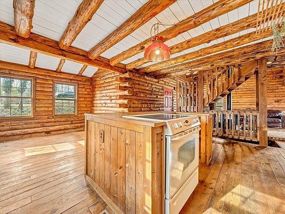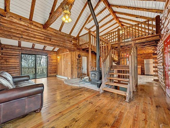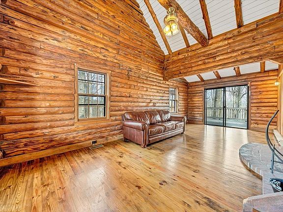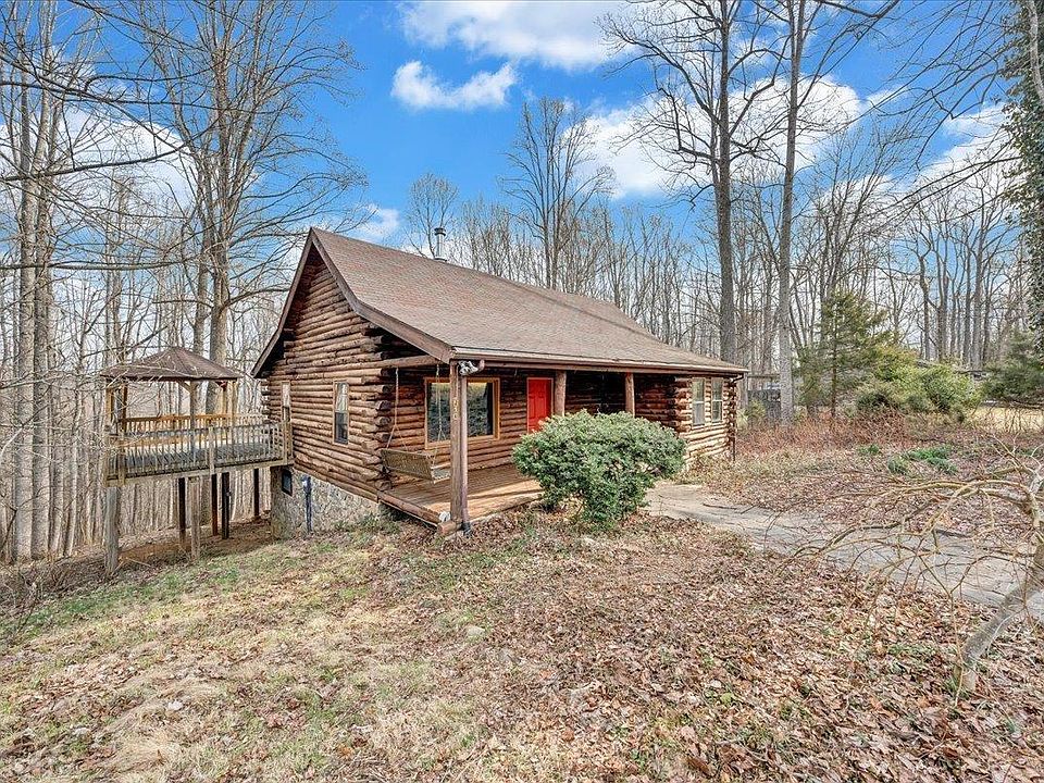 Come see this charming log cabin on over 5.5 acres just outside of Christiansburg limits in Shawsville! This home features a spacious upper loft bedroom, beautiful vaulted ceilings, and fully-functioning wood stove. The detached oversized single garage also has a finished apartment above it with full bath, kitchen, and living space which is great for hosting friends and family or for generating rental income. Enjoy the mountains from your wrap around deck with covered gazebo, or sip your morning coffee from the spacious front covered porch. Entertain in the walk-out partially finished basement, complete with bar, projector screen, and brand-new flooring. This home has had many recent improvements including newer refrigerator, newer claw-foot tub, and fresh exterior stain and paint. Conveniently located near Route 11, this is a great opportunity to own a charming log cabin on three lots in the NRV! Open house on Sat. March 12 and Sun. March 13 from 1-3 PM.