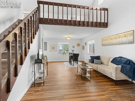 Welcome to this delightful home nestled in the heart of Colorado Springs and nearby to historical downtown Old Colorado City. Built in 1975, this 4 bedroom, 2 bathroom residence offers 1,431 sq ft of living space on a 7,200 sq ft lot. As you enter, you are greeted by a mudroom which leads to the 1 car garage or the main entrance of the home. The main level features a living room, kitchen, dining area as well as 3 bedrooms and 1 full bathroom. There is new carpet going up the stairs and throughout the second level. Upstairs, you'll find a full bathroom and the spacious primary bedroom with a walkout balcony to enjoy those beautiful Colorado sunrises and a loft area for an office or space to lounge. The kitchen includes a laundry area as well as a walk out to a deck attached to the large fenced in backyard. Outside, you will be greeted with a great view of Pikes Peak and has been landscaped with a fire pit for nights out on those summer Colorado evenings. Located in a highly desirable neighborhood of East Colorado City, this home is within walking distance to nearby amenities such as parks, shopping, dining, farmers market, and Old Colorado City. Don't miss the opportunity to own this charming piece of Colorado Springs history. Schedule your showing today!