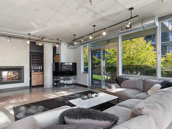 Former sales model at 730 Lofts now available! This one-of-a-kind unit has walls of glass in the living area and a private patio. Two windowed bedrooms, both with walk-in closets and full height walls. Fantastic kitchen with new appliances, a peninsula with space for barstools and an island with a wine fridge. Fantastic storage in unit and an oversized storage unit in the storage room. Custom blinds throughout, a gas line for grilling, and a double sided fireplace. Fantastic North Loop location near the river and the city’s best shops & restaurants.