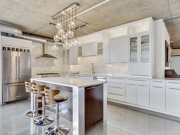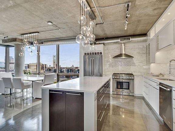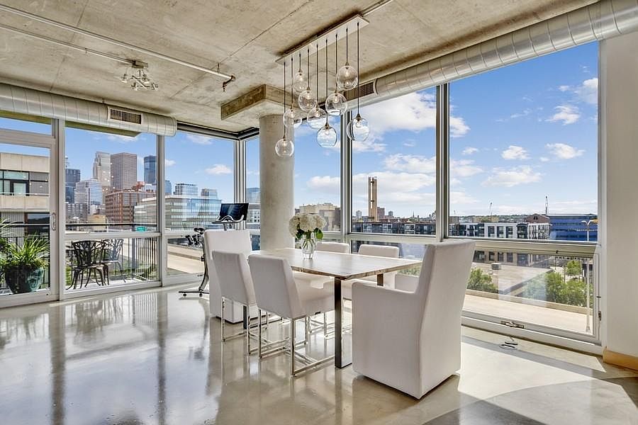 Stunning North Loop loft with 3-windowed bedrooms! Walls of glass in the main living area offer fantastic views and south and west exposure provide natural light all day. Electric blinds are an added feature for your evenings. Gorgeous kitchen with top of the line appliances, custom cabinetry & lighting and Caesarstone surfaces. Contemporary fireplace with floor to ceiling stone surround. Beautiful stained concrete flooring in living areas and walnut flooring in master bedroom. A brick wall and handcrafted barn doors add a unique texture. An open floorplan with a generous foyer offers private spaces and a large living area perfect for entertaining. Great location near fantastic restaurants and the river.