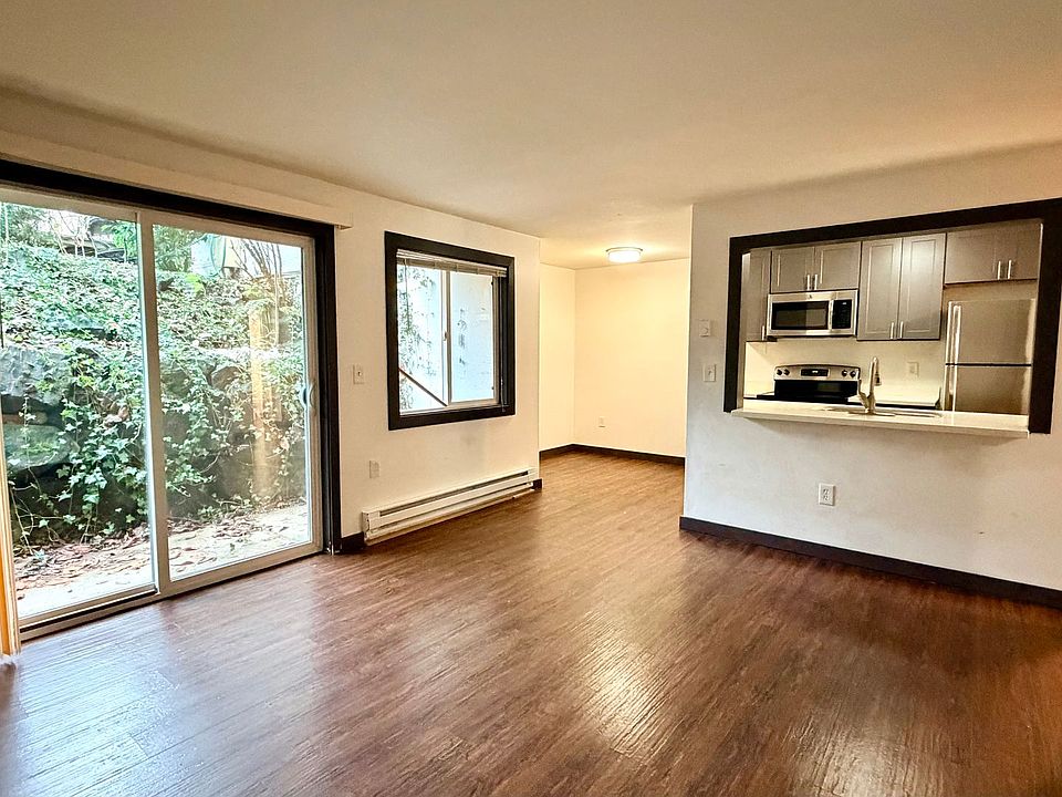 Apartment 103: Ground floor, large 1-bedroom apartment with outdoor patio, W/D and an open kitchen!