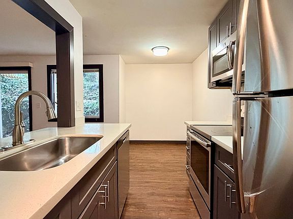 Outdoor patioOff-street parking availableWood-style floors throughoutOpen kitchenModern kitchenFull-size stainless steel appliancesAmple natural light