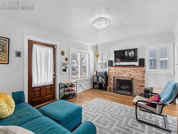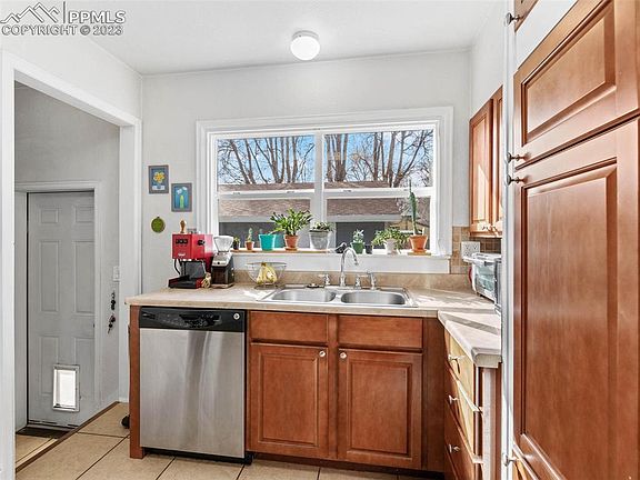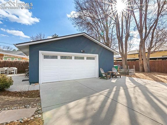 Exceptional downtown opportunity to own the charm of history with the convenience of modern touches. On entry, original hardwood floors stretch out in the sun-filled spaces and arched entries define the passages from room to room. A curio and built-in enliven the dining area and the kitchen has maple cabinets, stainless appliances, tile floor and a picture window looking to the backyard with a winter-time Pikes Peak View. Two bedrooms are on the main with an updated bathroom. Updated vinyl windows enjoy premium slatted shutter blinds in the living, dining and bedrooms. Downstairs is a third bedroom (windows lack egress compliance) and a half bath. In the backyard is a generous patio area for entertaining and a spacious, oversized two-car garage that is behind a gate opening onto Dale Street. There's additional space for gardening and enjoyment beyond the garage. Recently stucco'ed in 2021, this is a rare combination in the walkable/bike-able convenience of downtown.