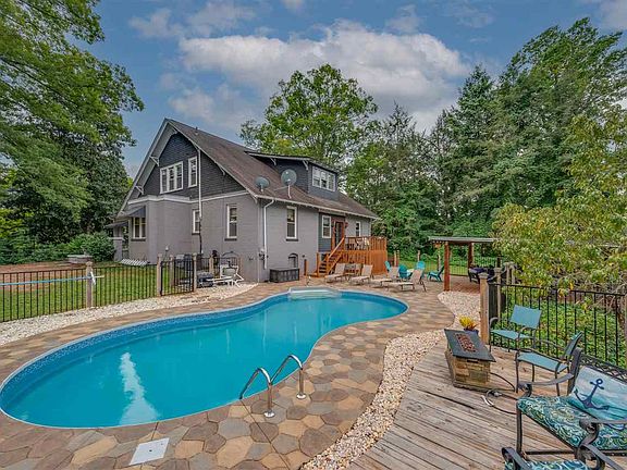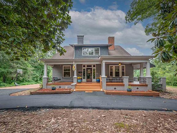 Grand 4/5BR historic home on 4 acres. Solid double brick construction. Very livable family home that is warm & inviting w/room for everyone. Home has been lovingly cared for! Remodeled/upgraded by current owners in 2013 & lots of improvements since! House sits back off of road w/circular driveway just (newly paved 9/21). Relaxing old fashion front porch. Large open rooms throughout, 10' ceilings, wood floors, LR w/FP, DR w/FP, Butler's pantry w/wine & beverage coolers, totally remodeled kitchen w/center island, laundry room/walk-in pantry, breakfast room w/pass-thru, 1st floor main bedroom w/remodeled bathroom suite, den/office, 3BR's & media room w/bar upstairs (originally the 5th BR & a separate sewing room), walk-in attic space, and so much more. Upstairs heat pump is 2 years old. Walk-in cellar used as a workshop. Heated inground pool installed 5/18. Great covered entertainment area perfect for large gatherings. Basketball court/area. Wonderful lot. This home is truly a must see!