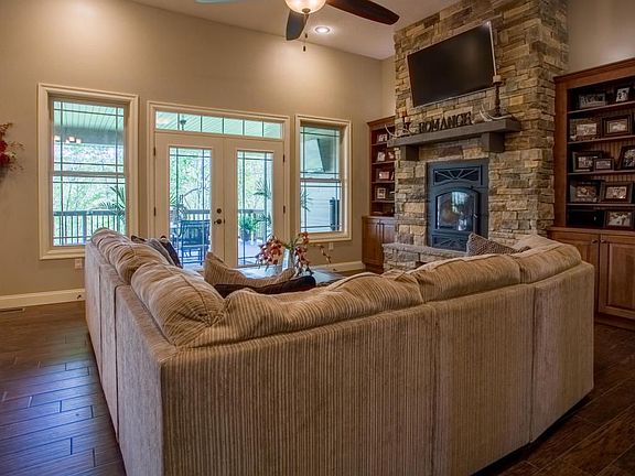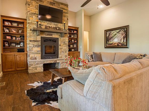 Amazing Craftsman style home tucked into the woods and wrapped in privacy! Step inside the foyer with a private office up front. The hall opens to the vaulted ceiling Great room w/ FP, built-ins and gorgeous windows overlooking the covered deck! Love how open this terrific kitchen is to the Great room and casual dining... and everywhere - views of the woods! Smart design with a HUGE master suite, master bath w/ heated floors - even in the shower! Spacious master closet flows to laundry - how smart is that! Three bedrooms on the other side of the home share two full baths! The lower level offers storm shelter/ storage, huge bedroom with access to full hall bath, family room w/ wood burning stove and wet bar. Love the expansive deck, fenced yard for little ones and detached shop.