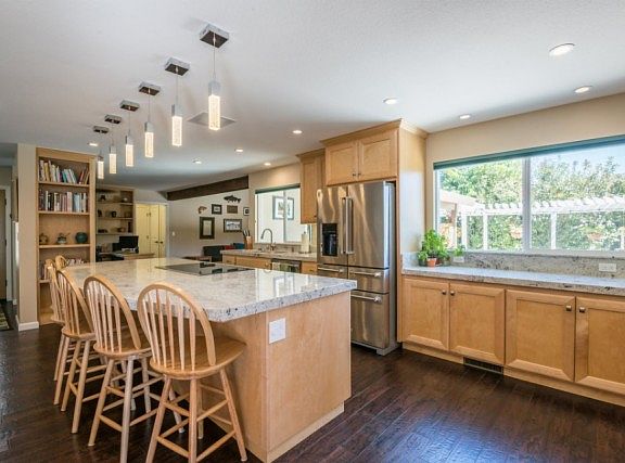 Lovely, updated custom beauty! Seller has spared no expense in the new amenities of this home w/a great open floor plan. Very large open kitchen w/massive granite slabs, custom Birchwood cabinets & stainless appliances & distressed walnut wood floors. Nice pool, covered patio & trex deck off the master & dining area! Don?t miss it!!Washer/dryer, refrigerator bar stools & Steward David solid oak buffet/china hutch & freezer in garage are neg. w/a strong price! Esc. at CTT-Modesto. Showings start at OH -10-13-16 from 3:30-6pm. All offers rec'd on wknd will be ack. the fol. Mon.