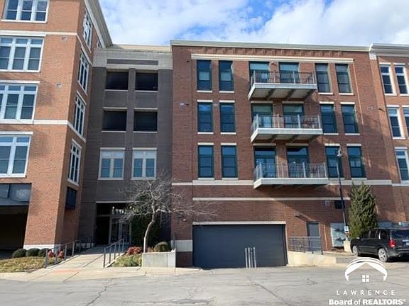 Special low price for quick closing! Hobbs Taylor Loft on 4th floor + parking garage spot #24. Has rare covered & enclosed screened patio. This is a perfect home or KU or Lawrence weekend getaway! HOA pays water, gas, & exterior & common areas for $441/mo! Owner pays electricity. 12 ft. ceilings. Great sunrise view from the enclosed private patio. Stainless Kitchenaid appliances. Slate tile around gas log fireplace. Community rooms & rooftop garden. Fitness room. Facetime, Skype, or Zoom tours available.
