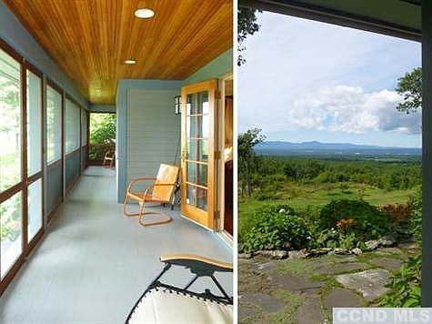 Overlooking expansive Catskill views, this energy efficient healthy home is idyllically sited up a long driveway off a scenic road. Superior quality contemporary has open floor plan, diverse ceiling heights, and passive solar two-story garden room. The craftsman-style stair leads past stained glass windows to a mezzanine overlooking the living area. The central chimney serves fireplaces in the living room and master bedroom suite which also has a huge whirlpool bath surrounded by windows. The second bedroom has a private bath, and the third bedroom has stairs to the turret room. A large screened porch wraps around the living area. The top-quality mechanical system includes heat-recovery ventilation. The 16.5 acre property includes a barn for cars and storage with fabulous studio above, landscaped perennial and veggie gardens, small orchard, extensive masterfully-built stone walls, and large, deep swimming pond. Totally private and quiet, yet minutes to the TSP, Hudson, and 2 hours NYC. Brokered And Advertised By: Peggy Lampman Real Estate Listing Agent: Peggy Lampman