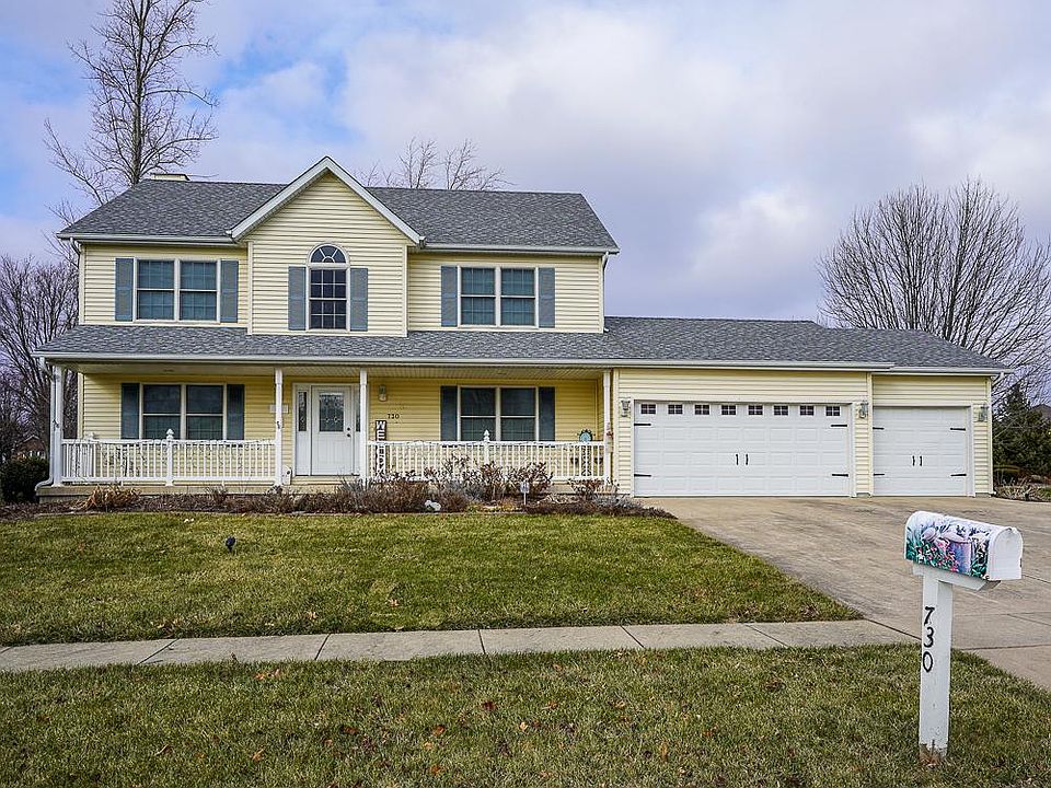 Location Location Location !! Check out the Curb Appeal on this one !! Beautiful Full Length Front Porch and Lush Landscaping . This Fantastic 2 Story is the Perfect Place to Call Home ! 4 Large Bedrooms , 2.5 Baths , Beautiful Formal Dining and a Large Eat In Kitchen, 2 Separate Living Areas and Gas Fireplace. The Kitchen Boasts Gorgeous Granite Countertops , New Refridgerator and Stove, Abundant Cabinetry, 2 Pantries, Water Treatment System, and Main Floor Laundry Mud Room right Off the Kitchen . The Master Bedroom has 2 Large Closets, Dual Sinks, Tub, and Separate Shower and an Extraordinary amount of Storage Space. The Basement is Insulated and Ready to Finish along with 2 Large Egress Windows, and Rough in for Bath. The Sellers had Begun ordering Materials to Finish the Basement and will Graciously Leave for the Next Owner~ i.e: drywall and flooring . This Lot is a full .25 acre and the rear is Fully Fenced, with not One but Two Patios and a Sidewalk That Winds to the Backyard. Bring offers , we are ready to sell ! This one Will go Quick !!