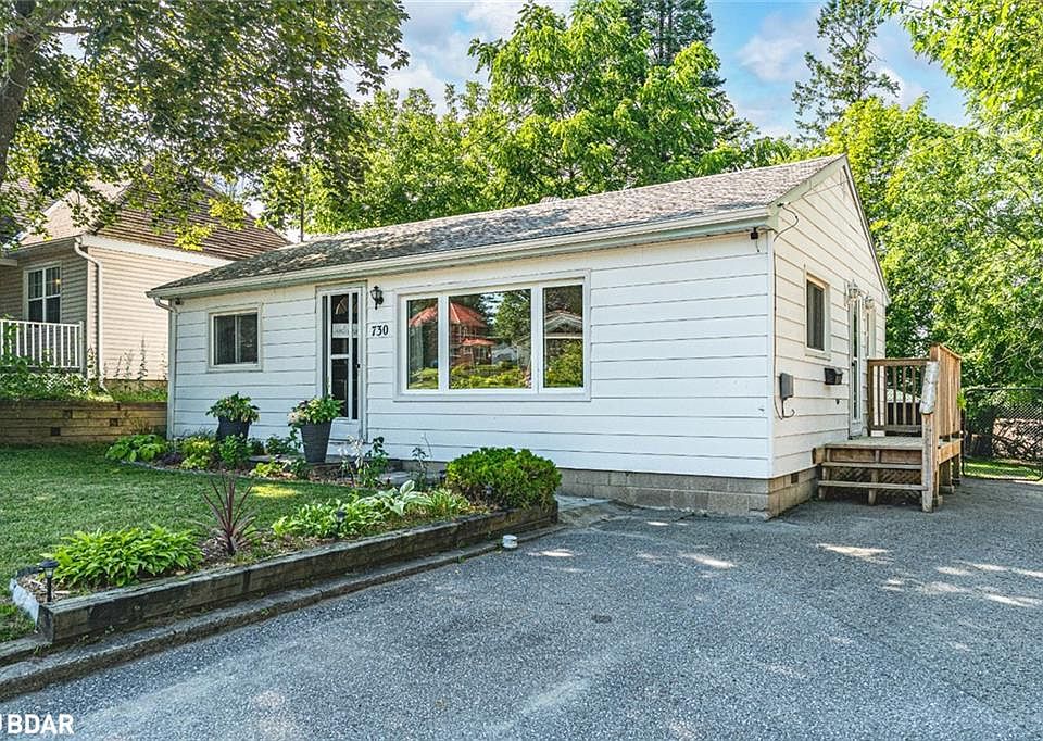 CHARMING BUNGALOW WITH A FUNCTIONAL LAYOUT, DEEP BACKYARD, & EFFORTLESS ACCESS TO TRAILS & MIDLAND BAY! Discover this delightful move-in ready bungalow set in a peaceful, family-oriented neighbourhood in the vibrant heart of Midland. Enjoy the ease of walking to Midland Bay’s marinas, sandy beaches, and scenic waterfront parks, as well as nearby schools, shopping, dining, and everyday essentials. Outdoor enthusiasts will love the proximity to local hiking trails and being just 20 minutes from Awenda Provincial Park for year-round adventure. Curb appeal shines with a beautifully maintained front lawn, colourful garden beds, and mature trees, while the deep, fully fenced backyard is ideal for kids or pets and offers plenty of room to garden, relax, entertain, and play. The extended driveway provides parking for 5 vehicles, complemented by a convenient secondary side entrance off the driveway. Step inside to a bright and welcoming living room with oversized windows that fill the space with natural light and tranquil street views. The renovated eat-in kitchen includes integrated laundry for added efficiency, while two spacious bedrooms and a 4-piece bath deliver comfortable, functional living. Fresh paint in the bedrooms, updated windows, and stylish carpet-free laminate flooring throughout offer a modern, refreshed feel, and a partial basement provides loads of accessible storage space, rounding out this exceptional opportunity. Don’t miss your chance to own this charming #HomeToStay in a prime Midland location - just move in and start living your best life!