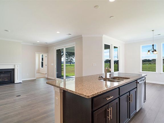 The Oceanside floor plan is located in Seaglass Village of Bridgewater! The spacious, single level home features coastal inspired architectural accents, outdoor living area and storage room in garage. A covered front porch welcomes you home to a large, inviting foyer. The Oceanside has 4 bedrooms. The spacious Great Room features a gas Fireplace and oversized glass slider to a covered rear porch. The Master Bedroom is separated from the other 3 bedrooms. This unique Oceanside model has an open floor plan from the kitchen, dinette area and great room. The kitchen in this home offers painted linen cabinets, a gas range, double wall ovens and a large center island with sink. Bridgewater is a natural gas community! This Oceanside has a gas furnace and gas tankless water heater. The Master Bedroom has a trey ceiling with crown molding and an enormous walk in closet. Dedicated laundry room is very spacious. Master bathroom features a 5 ft tiled walk in shower with seat, dual vanity, water closet with comfort height commode and large linen closet for storage. Enjoy the Carolina Sea Breeze out on the covered rear porch. This home is a must see on an oversized lot in Bridgewater! Schedule your appointment today. Pictures are for representation only.
