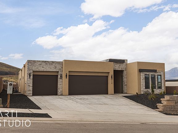 Experience open-plan living with mountain views at 'Kiva' in Zion Vista. This 3-bed, 3.5-bath home features a versatile casita, oversized garage, and spacious great room with indoor-outdoor flow. Modern adobe exterior with stone accents, tile roofing, and neutral tones. Perfect blend of traditional charm and contemporary design. Come enjoy the incredible views in your own private pool/spa!