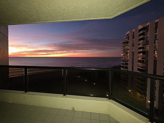 Stunning view of Marco Island's beautiful crescent shaped beach! This turn key beachfront condo offers a place to relax and enjoy all Marco has to offer. The master suite overlooks The Gulf and boasts a spacious en suite bathroom with separate vanities, a walk in shower, as well as an additional master tub/shower combo. A large walk-in closet gives space for a dresser as well as stack and hanging shelving. The lovely interior opens to the ocean front balcony appointed with table, 4 chairs, and lounger. Enjoy gorgeous sunsets, dolphins playing in the water, and the sound of the ocean waves. All furnishings including a recent king size sleeper sofa operated by remote are included. Give guests comfort with a view!