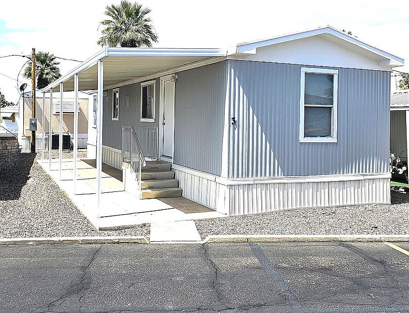 WE FINANCE... 14 x 52 Manufactured Home Recently painted interior and exterior Beautiful kitchen, with plenty of storage and NEW Appliances New Laminate flooring Washer and Dryer New window Coverings Covered patio Central Air Conditioning Private parking Home is to remain in this park On site management This home is located in the Karmella Mobile Home Community, a 55+ gated community nestled in the center of Mesa. Our community offers an updated Clubhouse with: Kitchen, Pool Table, Dart Board, Big-screen TV, and small reading & video area. The community also has a beautiful Swimming Pool, Laundry room, Paved Roads w/speedbumps, Security Cameras, and is well lit with on-site Management. The community is on a bus stop route and is within walking or biking distance to a variety of shopping, dining, arts and entertainment events and the downtown area. We're only minutes away from educational resources provided through Mesa Community College and ASU, and minutes from US 60 & 202 Freeways.