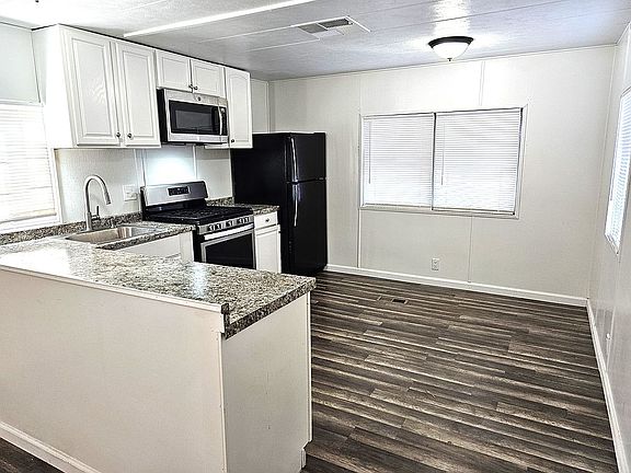 WE FINANCE... 1970 DEL HAVEN - #54 12 x 64 Manufactured Home 2 bed/ 1 bath Home Recently painted interior and exterior Beautiful kitchen, with plenty of storage and SS Appliances New Laminate flooring Washer and Dryer New window Coverings Covered patio Central Air Conditioning Parking Home is to remain in this park On site management