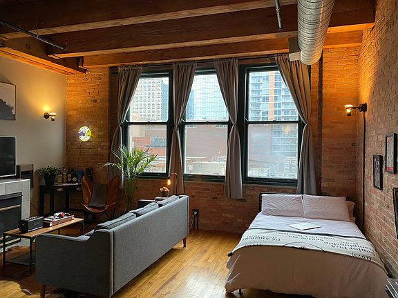 Spacious timber loft studio with beautiful exposed brick located in Printers Row! East facing with large windows allowing copious amounts of natural sunlight to flood the unit. This loft features an open concept kitchen with island, beautiful hardwood floors throughout, 12' ceilings, fireplace, walk-in closet and washer / dryer in-unit. Basic cable and internet are included in the rent! Building amenities include overnight door staff, receiving room, bike storage, on-site management, storage locker and is equipped with AT&T Fiber internet. Perfectly located near CTA, Metra trains and the expressway. Parking is available (separately) for sale / rent or there is permit street parking. Located near the new Riverwalk, parks, shopping and restaurants! Move-in/move-out fee: $250 (extra $150 if move-in on Saturday) Admin fee: $500 Refundable Elevator Deposit: $150