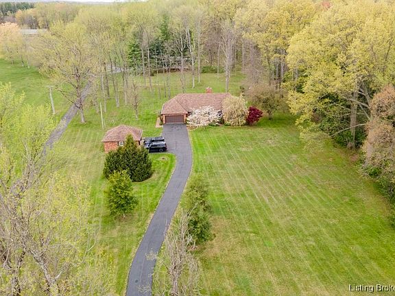 Welcome to this charming 3-bedroom, 2-bathroom ranch home, perfectly situated on 4.14 serene acres, offering both privacy and convenience. On the market for the first time, pride of ownership is evident with this home. The updated kitchen comes fully equipped with all appliances remaining, and a wall pantry for storage. The spacious sunroom is an ideal spot for relaxation, bringing in plenty of natural light & scenic views. The attached 2-car garage offers direct access to the home, while the additional detached 2-car garage provides ample storage or workshop space. Call today for your private showing – don’t miss out on this one! All sq ft & measurements estimated; if important buyer and/or buyers agent to verify.
