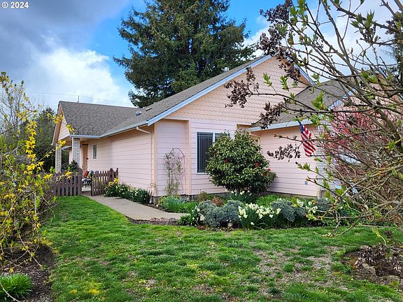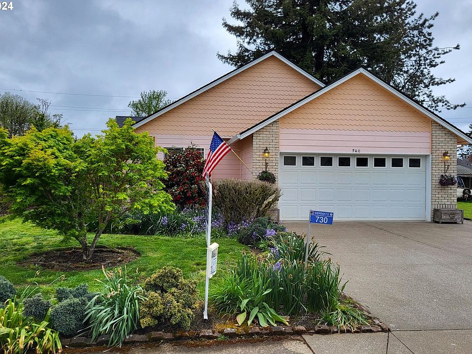 Well designed and spacious one level home near the high school. Great room specifically designed for large gatherings and wheelchair access (ADA) with laminate flooring throughout the home. One owner custom built home and time to downsize. Brand new roof! 3 bedrooms, 2 baths, primary suite has a roll in shower, vaulted ceiling, window seat and double lighted closets. Great room is vaulted, has a gas fireplace, ceiling fan, arched doorway, built-in hutch and slider to the patio and has a separate formal entry room. Finished garage with opener, ramped entry, storage shelving, sink and man door to the yard. Forced air gas furnace with AC and filtration system, gas water heater, huge utility/mud room with room for a freezer, a pantry and folding area. Kitchen has an eating bar, lots of cabinets and includes the stove, refrigerator, dishwasher, built-in microwave-all included. Mature flowers, trees and landscaping. Private front door behind a gate, fenced backyard, covered front porch patio, fishpond and 2 apple trees in the backyard (1 is Gravenstein).