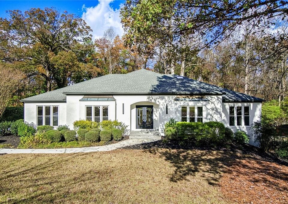 Welcome to this exceptional 5-bedroom, 3.5-bathroom large ranch with full finished basement nestled in one of the most coveted communities in North Fulton - Saddle Creek. Perfectly situated conveniently to downtown Milton, Alpharetta, and Roswell, this meticulously updated home offers a perfect blend of luxury, comfort, and is loaded with high-end amenities and features! With a completely updated exterior, your front entry has stunning black iron double doors that set the tone for the home. All new custom hardwood floors throughout the entire main floor and an elegant herringbone entry that greets you with style. A large, open-concept kitchen featuring all-new Thermador appliances is a chef's dream! Included is a 48" gas range with double oven, professional hood, and pot-filler. Additionally you will find a built-in microwave, counter-depth refrigerator, and stunning quartz countertop and backsplash - which is also featured throughout the home! The kitchen seamlessly flows into the open-concept dining area, creating the perfect space for entertaining. Both spaces enjoy large windows that flood the space with natural light as well as a skylight above the hallway to the laundry, pantry, and garage. Situated between the 2 car garage and kitchen you will find a massive walk-in pantry complete with a sink—ideal for additional storage and prep. This space also includes a beverage fridge for wine or additional drinks, a built-in trash receptacle, and plenty of cabinets and counter space for storage and small appliances. The full laundry room conveniently is located across the hall and has been beautifully updated to make even the most tedious chore enjoyable! When you enter the home you can't miss the beautiful and expansive living room with stunning tall ceilings, two-sided fireplace, and two sets of French doors leading to a serene sunroom. You'll love coffee in the morning or beverages at night from your sunroom with its high ceiling and fireplace or from the adjacent deck with views of your backyard. Situated off the foyer and between the kitchen and living room is a luxurious half-bath for guests and family convenience. Down the hall you will find two large bedrooms each with large closets. The updated main hall bath includes custom tile, quartz countertop, and a large vanity. There is also a coat closet and linen closet in the main hallway, as well as the entrance to the downstairs terrace level. The large primary suite features a spacious walk-in closet and luxurious primary en-suite, with double vanity, custom tile, and beautiful modern soaking tub. The finished daylight, walkout terrace level/basement features: Two additional bedrooms with tons of daylight and a gorgeous full bath—perfect for guests, growing families, or multi-generation living | Spacious living room with a brick fireplace and built-in wet bar, ideal for entertaining or relaxing with loved ones | Huge bonus room that can be used for a home theater, gym, or playroom | An additional versatile room perfect for wine storage, a bar, or a safe/tech room | Massive storage area to accommodate all your needs | Additional laundry room for convenience More Features: All-new double-hung windows with safety latches and dual zoned HVAC systems for maximum energy efficiency and comfort | Beautifully updated, modern fixtures throughout | A peaceful, private lot with plenty of space for outdoor activities, gardening, or just relaxing in the tranquility of this highly sought-after neighborhood. Community & Location: Optional HOA offers fantastic amenities including swim and tennis—perfect for family fun and fitness. Conveniently located in top-rated Milton schools and close proximity to transportation, shopping, dining, and entertainment options. This home is truly a rare find, offering both luxury and functionality in one of the most coveted areas of North Fulton. Don't miss your chance to make this beautiful property your new home!