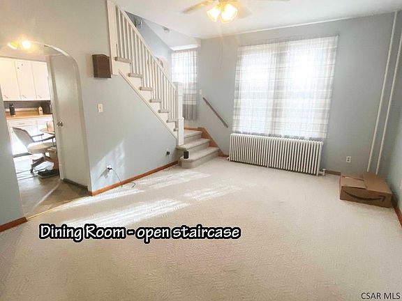 Well cared for 4 Bedroom, 2 bath vinyl sided 2 story with woods behind. Nice eat-in kitchen with lots of cupboard space & includes the refrigerator & gas range. Living Room w/electric fireplace, Dining Room with open staircase, Sunroom & main floor Bath with walk-in shower. 2nd floor has 4 Bedrooms and a full Bathroom. Walk-up attic could be finished into more living space or great for storage! Walk-out basement includes the washer & dryer & 2 freezers & has a toilet. Newer windows. 3 window A/C units included. Covered rear patio. Beautiful rhododendrons. Nice views! There is a recorded Easement/Right of Way for 2 off street parking places on the lot to the left.