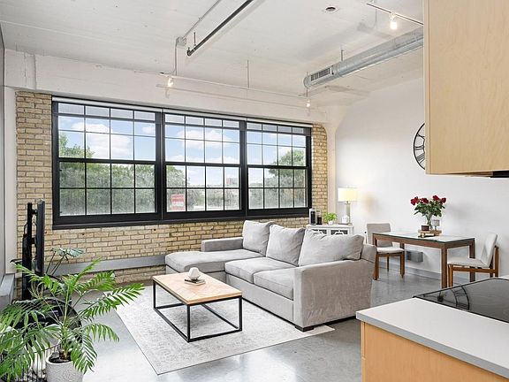 Rent includes heat, A/C, internet, cable, water, sewage, recycling, and trash. Unit Features: Beautiful architectural detailing throughout the 3rd floor loft and building. Wall of windows facing lawn and trees, exposed brick accents, 12 ft. ceilings, walk-in closet, in-unit laundry room, and large bathroom. Community Features: Professionally managed, secure fob entry, underground assigned parking, large community room, business center, fitness center, gas fire pit, patio with grill and city view, fenced dog park, visitor parking, gardens, lawns, elevators, and bike storage. Area features: Bikeway across the street, multiple trails including Minneapolis diagonal trail, entertainment, shops, restaurants, 35W freeway access a block away, and Ridgway Parkway Park for the best view of Minneapolis! Renter is responsible for electric only.