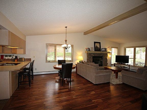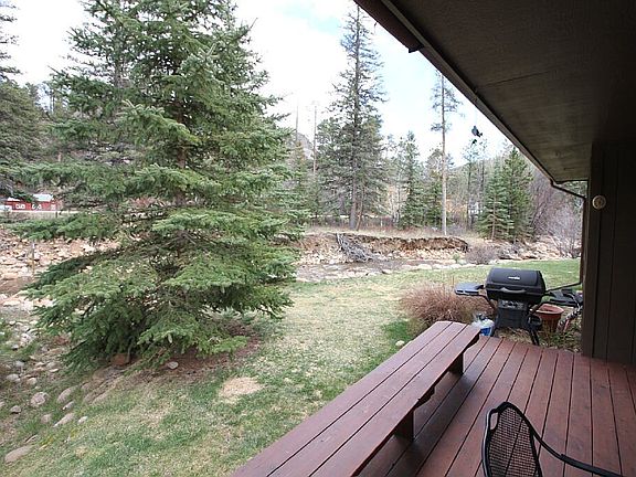 Beautiful attached condo on the Fall River in a quiet private neighborhood. Enjoy one of the prettiest locations in Estes park from the comfort of your covered deck, with view and tranquil sounds of the Fall River and views of Castel Mountain. Step out to the river for an afternoon of fly fishing, or just sit on the deck and enjoy the abundant wild life with frequent sightings of Elk and Big Horn Sheep. Many updates including new hardwood floors in living and dining areas, tile in kitchen, foyer and bath and newer carpets. Single level living with no stairs and attached 2 car garage. The great room is spacious with vaulted ceiling and fireplace that can be used as gas or firewood. Riverfront properties on the Fall River rarely come available, this one at the end of a street will not last. The property is available for immediate occupancy.