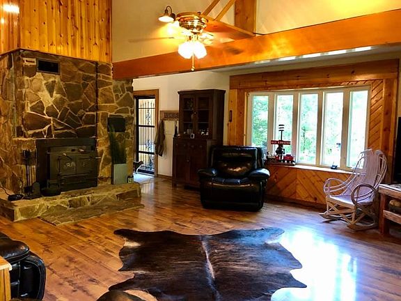 730 Toms Run, Spencer - Unique chalet style home on 2.03 acres +\- with commercial size (36x52) garage. This multi-level home boasts wood cathedral ceilings, stone fireplace and stone accents, inside this 1,300 sq. ft home. Home offers 1 bedroom with additional option to add additional bedroom area,1 full bath, dressing room area, large kitchen with island, dining area and laundry room. Garage will impress any buyer with its 16 ft high ceilings, 14 ft door (with opener), heat source and a/c, 1/2 bathroom, 6" concrete floors and overhead gantry crane. Also included 36x12 equipment shed and 8x12 insulated shed, front covered porch, side patio, excellent rock base driveway. Beautiful setting, directly off a paved road. Ideal get away place! $199,000