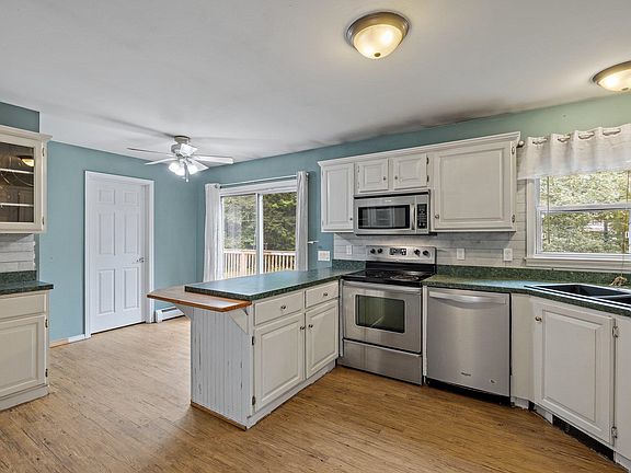 Great location! This three-bedroom, two full bath Ranch on 1 acre has a partially finished walk out basement with In-law potential. Spacious kitchen with breakfast bar, plenty of cabinet and countertop space, oak cabinets and eat in kitchen area with glass slider to back deck. Separate formal dining room and large living room with woodstove. Hardwood floors and great natural light throughout. Primary bedroom with bath and walk in closet. Two additional bedrooms with another full bath. Basement has potential for the buyer to finish it all. It is currently partially finished, and some flooring is available to buyer in order to be finished after closing. It has a large spacious family room, 3 additional rooms, insulated and sheet rocked, plumbed for full bath, just needs to be completed. Some plumbing and electrical also done to make it ready for another potential kitchen in the in-law area. Double glass doors & walk-out for light & easy access. Home sits up nicely on the lot and have a back deck and nice level backyard. Perfect commuter location, within minutes to I93 North and South. Close to all Lakes Region & Central NH amenities.