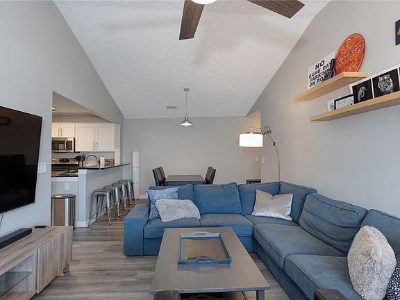 Completely renovated condo on the top floor of with views of Jordan Hare Stadium front the covered balcony! New flooring, paint, kitchen cabinets, backsplash, countertops, appliances, lighting, vanities, and more! This tastefully renovated unit is conveniently located and move-in ready!