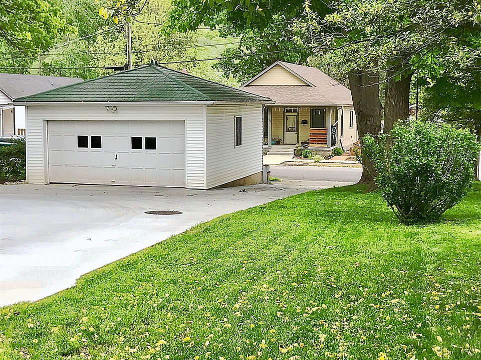 Historic home located right in the heart of downtown Madison Indiana. Within walking distance of local shops, and restaurants. This 5-bedroom 3 1/2 bath home offers a spacious living room with vaulted ceilings and two gas fireplaces. The kitchen was updated in 2019 and includes stainless steel appliance, custom granite countertops, Island, double oven, w/ warming drawer, and gas fireplace in the dining area. The master suite has built in book shelves surrounding the king bed, a large walk in closet, and full bathroom with additional storage. The second bedroom has a large custom built closet with pocket doors, and attached bathroom. This home also offers a large outdoor space with off street parking, concrete driveway, 3 tiered deck and a 2 car garage.