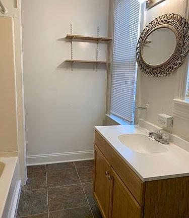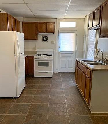 5 bedroom, 1 bathroom house with tub/shower combination, living room and eat-in kitchen with stove and refrigerator. Fenced yard and unfinished basement for storage. No pets. Tenant is responsible for all utilities.