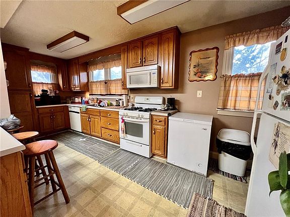 Very nice, clean, 3 Bedroom, 1 Bath Bungalow with over 1200 sq feet of living space. Unique lighted hexagon shaped recessed ceiling with fan in the Living Room includes a beautiful floor to ceiling bay window. Eat-in Kitchen with island and an incredible amount of storage/cabinetry includes some appliances. Replacement windows. Shed. Relax on the Front Porch with your morning beverage of choice and vinyl sided for a maintenance free exterior.