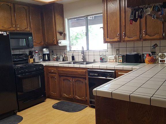Beautiful two story home on 0.24 acre lot in Ripley Estates. 3 Bedrooms 2 baths with an office room down stairs. Interior of home has been freshly painted. Exterior wood trim has been either painted or sealed. Covered entry way leading into home. Floor tile in living room, laundry room and both baths rooms. Laminate flooring in entry, kitchen and dining area. Full raised fireplace in sunken living room . Popcorn has been removed on downstairs ceiling except for the office. Large dining area. Kitchen has tile counter tops, gas stove DW, MW and Refrigerator stays. Inside laundry room large enough to put upright freezer. Large Master bedroom with a sliding glass door leading out to a Balcony over looking the back yard. Both front bedrooms have doors leading out to a Balcony. Front balcony has Trex boards on the deck. Two master cools one upstairs and one for the down stairs each have separate ducting. Mini-split heating and cooling system throughout house. Carpet in all bedrooms. Large covered patio. RV access with sewer hook up. Storage shed in back yard. Front yard is xeriscape, back yard is very large with grass and fruit trees. Solar sytem installed in September 2020, currently producing 143% of owners usage.