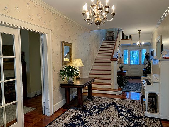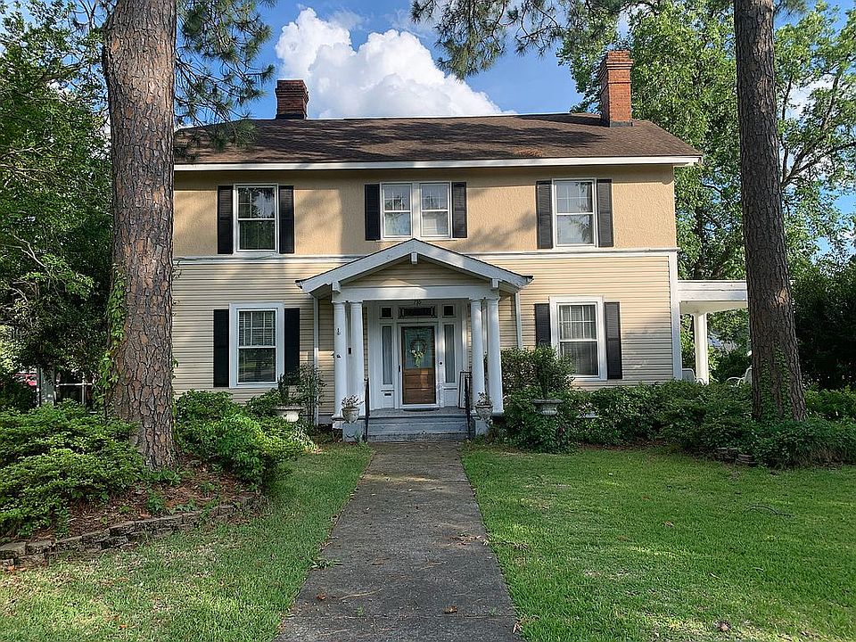 This house, built in 1920, is on the National Historic Register. The six column flanked portico is a fitting preface to the grand entry which spans from front to rear with the focal point of a majestic staircase which includes a landing and curved balustrade. Completely finished in heart pine floors, the rooms are gracious in scale and flowing through large, double doorways with light from the tall, wide windows. The home features five fireplaces, built-in bookcases, 9 1/2 foot ceilings, original kitchen cabinets with heavy molding and a pass through service to the breakfast room, pinwheel tile bathroom floors, a large, high attic, a service basement, and a detached garage.