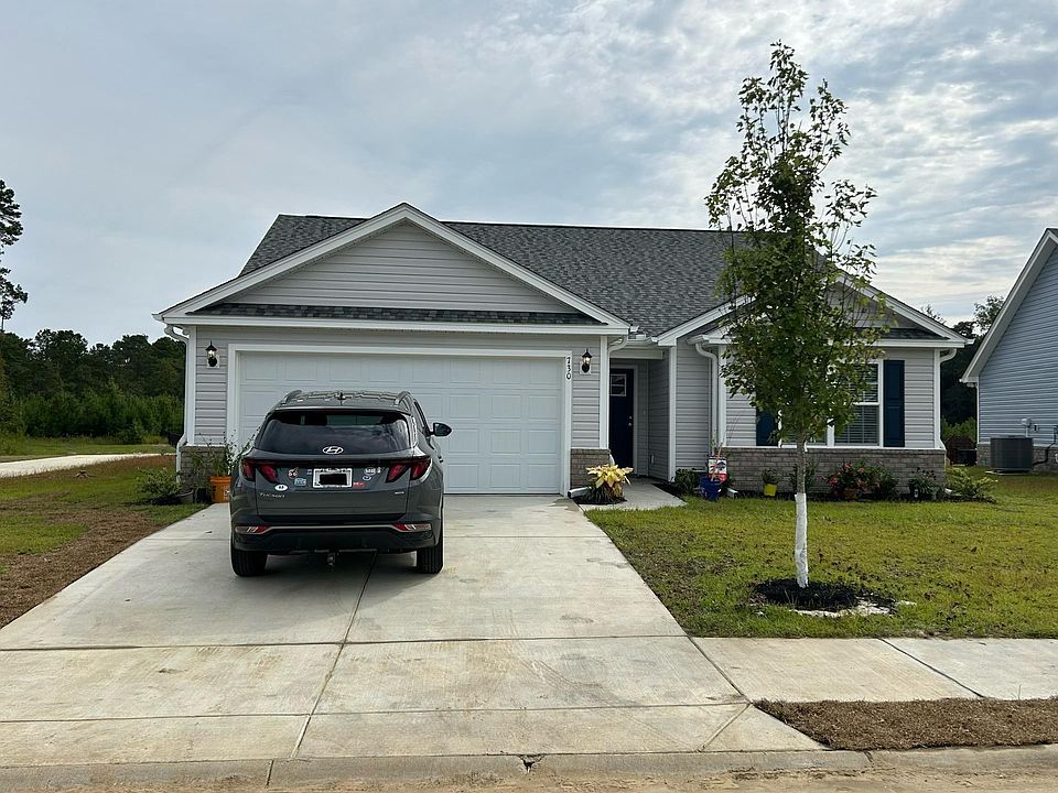 This popular Sewee model has it all! Open concept home with a modern open design on a spacious lot. This floorplan features lots of windows and 8ft ceilings allowing natural light to flow in. The living and dining rooms are adjacent to the kitchen which makes entertaining effortless. This kitchen includes granite countertops, Aristokraft™ Shaker style cabinets, and stainless appliances. Come see all the insightful features designed with you and your lifestyle in mind including beautiful yet durable waterproof laminate flooring throughout the main living areas and stain resistant carpet in all the bedrooms. The homes in Woodside Crossing feature the comforts and economy of Natural Gas. Our Included Natural Gas package consists of a Tankless Hot water Heater, Gas Range, and Gas Heating. Other features and benefits of this home include but are not limited to spacious covered rear porch overlooking extra grilling patio, maintenance free exterior features such as premium vinyl siding, soffits and fascia; and high performance GAF™ Architectural shingles, , interior trim package includes window casings and stool for durability and appeal, relaxing baths with cultured marble countertops with integral bowl; executive height vanities in all bathrooms; elongated toilets; contoured fiberglass shower and tub units. Woodside Crossing is located on Four Mile Rd just 10 minutes to downtown Conway and minutes from Hwy 22 with quick access to Myrtle Beach, Little River, North Myrtle Beach, etc. Building lifestyles for over 35 years, we remain the Premier Homebuilder of new residential communities and custom homes in the Grand Strand and surrounding areas. In 2022, 2021, and 2023 we received the Best Home Builder award from WMBF News Best of the Grand Strand. We want you to experience the local pride we build today and every day in Horry and Georgetown Counties. We are excited to welcome you home at Woodside Crossing! Pictures, photos, colors, and layouts are for illustration purposes only and can vary from home to home. Customization may be possible – call listing agent for availability. Square footages are approximate.