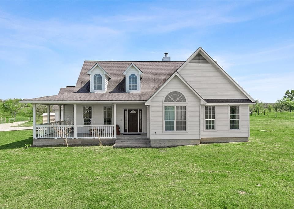 Enjoy a short and scenic drive from BCS to this peaceful country home that features a wrap-around front porch, pretty white façade, and creek. Foyer opens to a split floorplan with open concept kitchen/living room layout and plenty of windows for natural light. Breakfast area has large bay window overlooking the back of property. Dining room offers flexibility of use as an office or other space. Laundry room has 1/2 bath and exterior door to the back porch, making it a great feature in which to take off those dirty clothes and shoes before entering the house. Master BR features vaulted ceilings, private French doors to back porch, walk-in closet, and en suite with double vanity sinks, garden tub, and stand up shower. Two-car garage with ample storage or possible additional living quarters in vaulted attic. Approx. 4 acres ready for livestock, gardening, farming or whatever recreational hobby you like! Call today to schedule your private tour of this attractive property!