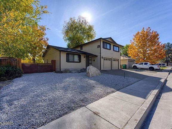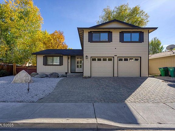 South Reno home that truly shows pride of ownership! From the moment you arrive, you'll notice the freshly painted exterior and the paver driveway that add to its curb appeal. Inside, you'll find thoughtful updates throughout—including a newer roof, central A/C added in summer 2025, hot water heater replaced 2015, ceiling fans in every room, and popcorn ceilings removed for a modern, clean look. The updated kitchen features upgraded cabinets and a new dishwasher, creating a bright and functional space for everyday living. Living room plus den layout offer plenty of options for families, half bath located downstairs for convenience. Upstairs, you'll find three spacious bedrooms and two full bathrooms. The primary suite offers double closets and a relaxing ensuite with a walk-in shower and a soaking tub. The secondary bathroom provides an extended counter with plenty of storage. Enjoy your private backyard retreat with mature trees and a concrete patio—perfect for entertaining or simply unwinding outdoors. With ample storage throughout and a convenient South Reno location near parks, shopping, and schools, this home combines comfort, function, and style in one perfect package.