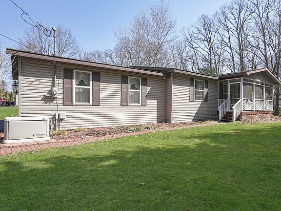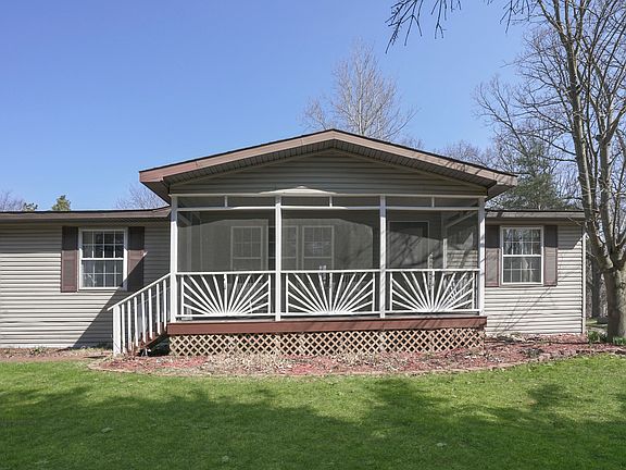 Peaceful country setting at Big Pine Island Lake includes a wonderful rocking chair front porch, screened for your comfort, a generous size living room and formal dining room, owner suite with private full bath, two additional bedrooms with second full bath plus a main floor laundry all in top condition and above average quality. Enjoy a large 2 stall attached garage with electric door opener. Newer whole house generator, newer floors, newer roof, newer water heater, newer water softener, newer dishwasher, newer carpet, newer paint, newer storm doors, newer deck, in 2018. Belding School buses stop at this home. Immaculately kept and ready for summer lake living. Excellent value at $149900.