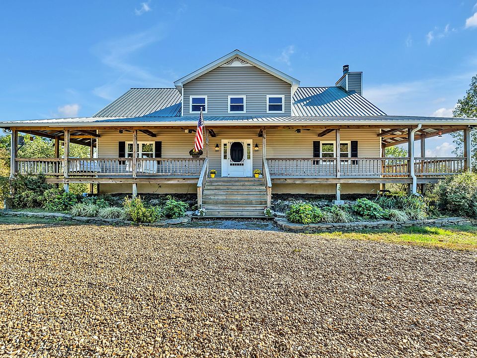 MULTIPLE OFFER SITUATION H&B 10/23 1:00 Welcome to "Birds Eye View". Approx. 12.26 acres of 360 degree views with pasture and woodlands. Various orchard trees and berry plants. Property features a cozy home with 4 bdrms, 3 baths, wrap around deck, a bonus rm, stone fireplace with soapstone stove. Stunning hardwood flooring and bead board and vaulted ceiling. All kitchen appliances remain. The basement has a storm rm with steel door. Includes a barn for your animals, a 40x40 Shop Electricity not connected. Convenient to I-65.