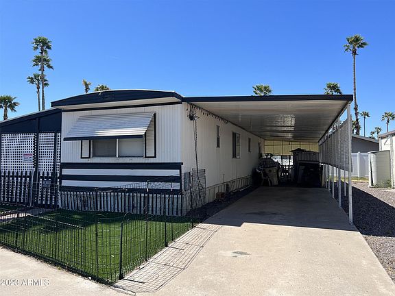 Affordable manufacture home, that includes most furniture inside with sale, a list of those items will be provided if buyer is interested otherwise seller will give away, 2 bedrooms 1 bathroom, nice patio area (Awning on North side will be installed and S Awning repaired. 2 car slab parking,, Central AC plus 2 window AC units, freshly painted outside, inside laundry, washer, dryer, refrigerator its all included. Community has lots of activities all the time, plus a community pool, located few blocks away from down town Glendale, shopping and all services needed. Occupant must have 55yrs of Age and 1 person of 35yr+ can occupy property as well. Comm fee bills for Lot rent plus water and sewer, Gas, Cable, TV-internet and electricity are Occupants.