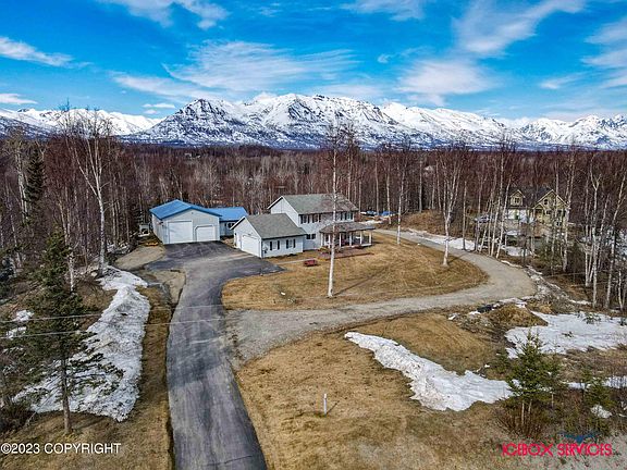 Stunning mountain views, over 2 acres, 1900sf home with beautifully remodeled kitchen, 2-car garage and a 1740sf shop. This meticulously cared for home is just north of Palmer and close to Hatcher Pass. Updates include kitchen remodel, new kitchen appliances, new paint and flooring, new front deck. The shop is versatile with two work areas, 12' ceilings and 11' garage door.