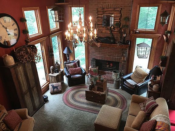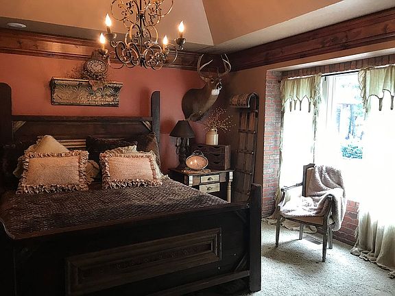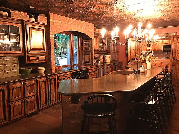 Breathtaking & Pristine. This beautifully landscaped country home sits on 18 acres of a heavily wooded retreat near Far West. Remarkable home features custom architectural tin ceilings, copper tub & sinks, custom chandeliers, and gorgeous stone & brick fireplaces as well as accents throughout. Outside there are 3 large sitting areas including a Belgard custom patio with a built in fire-pit, a triple tiered Trex deck with arbor, and a heated in-ground swimming pool with electric cover. The heart of the home is an amazing kitchen featuring knotty Alder cabinets with quartz countertops, a 14 ft island, a 1-of-a-kind hand painted architectural tin ceiling, a stunning brick fireplace, hand scraped hardwoods, & spacious butler's pantry. This 5 bedroom, 4.5 bath country home has over 4,000 sq. ft. + plenty of storage. Great room features cathedral ceilings, solid oak beams, and a floor-to-ceiling custom brick fireplace. Enjoy living outdoors while being indoors with this gorgeous custom built vaulted knotty pine sunroom that opens via double doors onto a covered massive 2-level deck with a hot tub that overlooks the private wooded back yard. Located near historical FAR WEST. High Speed Internet Available.