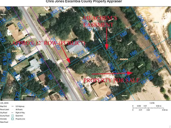 New HDMU Zoning allows for 25 units per acre and some commercial uses! The State has closed the demolition land-fill! Wooded interior lot. Convenient to one of the fastest growing areas of Escambia County. Please call for information about obtaining an easement to the property. The approx. 12' Right of Way from Rolling Hills Rd is apparently owned by the County and is public right of way. The "T" easement at the top is owned by one of the property owners that lies on it and is willing to work with the buyer to provide access. Sizes and details are believed true but should be confirmed during inspection period.