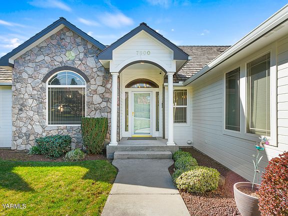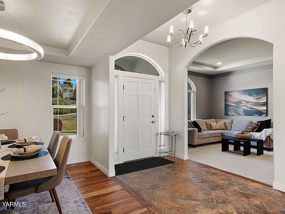 Find an open and airy floor plan in this spacious rambler. Upgrade your lifestyle with a chefs kitchen complete with stainless appliances, an oversized island and beautiful quartz countertops. A formal dining room found off the entry as well as a flex space that can be used as an additional living space or office. Beautiful and well appointed primary suite located on one side of the home in addition to two bedrooms located on the opposing side. Property also boasts a fully fenced backyard with a patio and pergola great for entertaining this summer on the warm Yakima nights. A three car garage rounds out this property with plenty of off street parking in a fantastic and centrally located neighborhood.