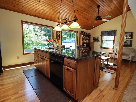 This house scores a perfect "Olympic 10." Stunning custom kitchen with granite counters, island breakfast bar, hardwood floors & vaulted ceiling; lovely living room w/ bay window; 3 spacious bedrooms; Rec room in walkout basement w/ pool table included; 1st floor laundry; 2004 new vinyl siding; 2006 Hi Efficiency furnace, central air & Rinnai hot water heater; 2007 "Tear off Roof"; Also central vacuum plus 24x30 outbuilding.