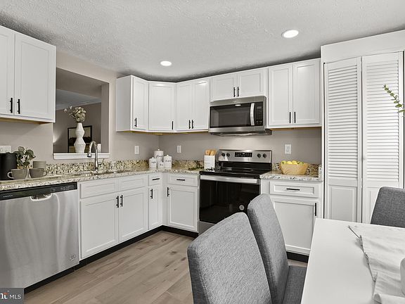 Explore this beautifully renovated colonial home tucked away on a quiet cul-de-sac! Step inside to discover the elegance of engineered hardwood flooring gracing the main level, harmonizing perfectly with the fresh new carpet, upgraded lighting package, and contemporary color palette that flows throughout. The eat-in-kitchen is well-appointed with its white soft-close cabinetry, stunning granite counters, sleek stainless steel appliances, and a spacious pantry, making meal preparation a joy. The generous living space is perfect for gathering with friends and family and is accentuated by crown molding and a sliding glass door that leads to your inviting deck - perfect for indoor-outdoor living. Retreat upstairs to the primary bedroom, featuring a walk-in closet and easy access to the beautifully appointed full bath, complete with a to-ceiling tiled tub/shower surround. Two additional generously sized bedrooms provide ample space for family, guests, or a home office. The finished lower level offers endless possibilities for recreation, entertainment, or relaxation. Outside, a fenced backyard and expansive tiered deck invite you to unwind and entertain in style. Cooling unit has a new coil. As part of the Edinburgh community, residents gain access to a community pool for summertime enjoyment. Commute with ease, as this location offers a quick connection to Metro and major routes including I-495, I-270, and MD-200, granting you convenient access to Washington DC, Rockville, Columbia, and beyond, where an array of shopping, dining, and entertainment options await. Don't miss the opportunity to make this stunning colonial home your own.