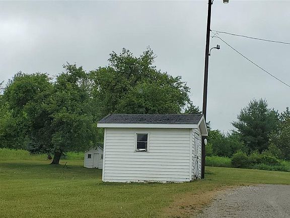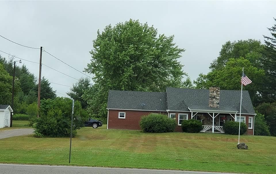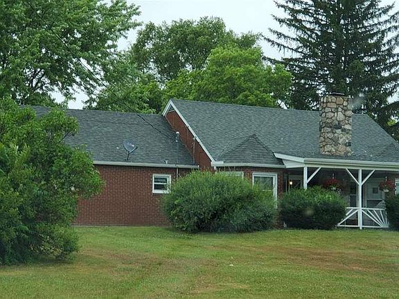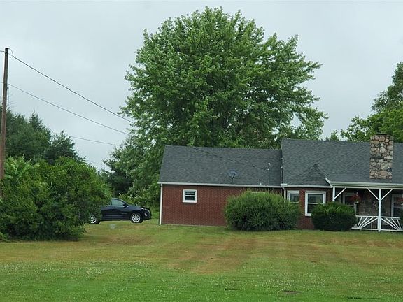 just west of town , on paved road sits back off the road, perched up a bit, for a gorgeous private view and location! 4.5 acres gives you room for many things, just some privacy or able to have up to 4 horses! a garden and lots more! this stately all brick home has a beautiful covered front porch, just to have your coffee or sit and watch wildlife! beautiful mature trees!many updates, extra garage besides att garage, so lots of storage,Gorgeous original hardwood floors through out! 2 br 1 bath on main floor , 3 br upstairs could be huge one bedroom or maybe remodel in to 2 bedrooms if you need more room. Sewer and Natural gas are a big savings, newer roof.Newer windows! Kitchen has a nice breakfast nook with a view out bay window!, loads of parking, , shed/ play house ,you will like this place, so close to town yet private!