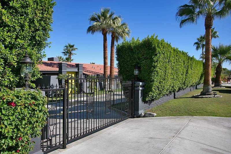 First time availability of The Palms Estate in South Palm Desert within walking distance to shopping and dining on El Paseo Drive. This property on .65 acre lot with beautifully grown palm trees has been renovated to include 5 bedrooms and 5+ baths and large outdoor liiving spaces. The main house has 3 ensuite bedrooms, a large Great Room with dining area open to the kitchen, high ceilings and large glass sliders. 2 bedroom, 2 bath Casita also opens to the amazing outdoor oasis. This sprawling estate includes a 52' saltwater pool and spa with abundant areas for seating and lounges. Cabana areas surround the pool, a 10' outdoor bar, putting green and horseshoe pit. Enjoy the outdoor game room with a 32" flat screen TV, ping pong, billiard table and video game console. Extensive outdoor lighting enhance the property at night. The interior is designed in modern Palm Springs glamour era with custom furnishings. Private gated circular drive and oversized 2 car garage. One of a kind offering.